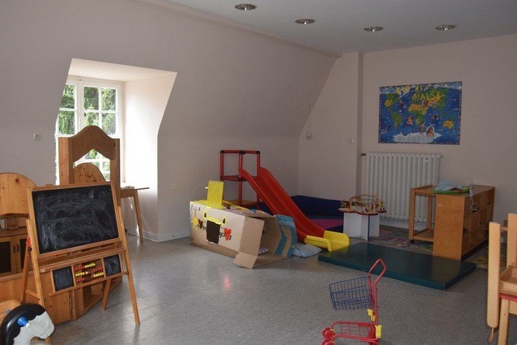 1946 konnte das Jugendheim wieder zurückerworben werden, worauf die Gemeinde die Räumlichkeiten des Hauses und der Turnhalle an ausgebombte Einzelhandelsgeschäfte vermietete. Vier Jahre später richtete man im Jugendheim einen Kinderhort ein, der 1959 in den neben dem Gemeindehaus errichteten Kindergarten umzog.